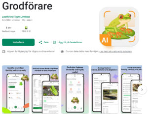 LeafMind Grodförare: 36 – 335 kr, på engelska. Släppt april 2025, uppdaterad jan 2026. Ta ett foto eller laddad upp en bild och få grodan identifierad av AI-bildigenkänning. Information om grodarter, deras beteenden, livsmiljö och läten. Skapa din egen artsamling. Ladda upp appen från Google Play