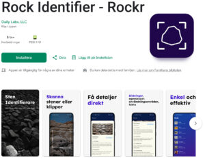 Rock Identifier – Rockr. 59 – 295 kr, på engelska. Släppt juni 2025, uppdaterad sep 2025. Offline åtkomst. Inget konto/inloggning. AI-baserad bergarts- och mineralidentifierare. Ta en och få stenen identifierad med namn, bergartstyp (magmatisk, sedimentär, metamorf) och viktiga egenskaper. Detaljerad information om bergartens typ, hur den bildats, dess textur, hårdhet och vanliga användningsområden. Ladda upp appen från Google Play
