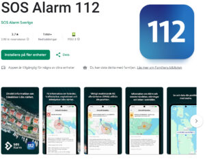SOS Alarm 112: Gratis, på svenska. Släppt aug 2019, uppdaterad dec 2025. Ger dig trygghet under din utevistelse. U får direktinformation om händelser i din närhet: bränder, trafikolyckor, explosioner, båtolyckor och nödställda i vatten. VMA (Viktigt Meddelande till Allmänheten) och annan krisinformation. Förebyggande kunskap som första hjälpen, HLR, viktiga telefonnummer. Se och dela din position med andra och SOS. Direktuppringning till SOS med din position. Ladda upp appen från Google Play