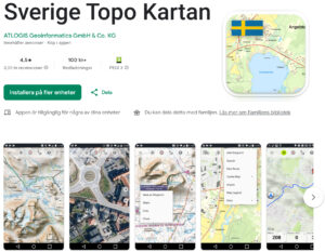 Sverige Sverige Topo Kartan: Gratis (köp i appen 49 -174 kr för offline-läge), på engelska, släppt juni 2017, uppdaterad jan 2026. Förvandlar din mobil till GPS med 1:50 000 topografisk kara Skandinavien, OpenStreetMap, Satetllitkartor, spårinspelnning, waypoints, importera GPX, KMZ filer. Ladda upp appen från Google Play