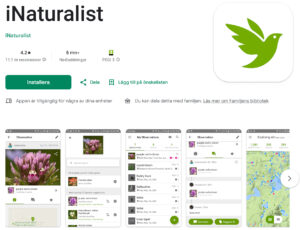 iNatralist: Gratis, på engelska. Släppt dec 2011, uppdaterad okt 2025. Kan användas över hela världen. Mappa dina fynd, ta del av andras fynd. Diskussions communities. För mer avancerade användare. Som en av världens mest populära naturappar, hjälper iNaturalist dig att bestämma växter och djur omkring dig. Få kontakt med en gemenskap av över 400 000 forskare och naturforskare som kan hjälpa dig att lära dig mer om naturen! Och dessutom, genom att spara och dela dina fynd, skapar du data av forskningsklass för vetenskapsmän som jobbar för att bättre förstå och skydda naturen. iNaturalist är ett gemensamt initiativ av California Academy of Sciences och National Geographic Society. Läs mer på www.inaturalist.org Ladda upp appen från Google Play